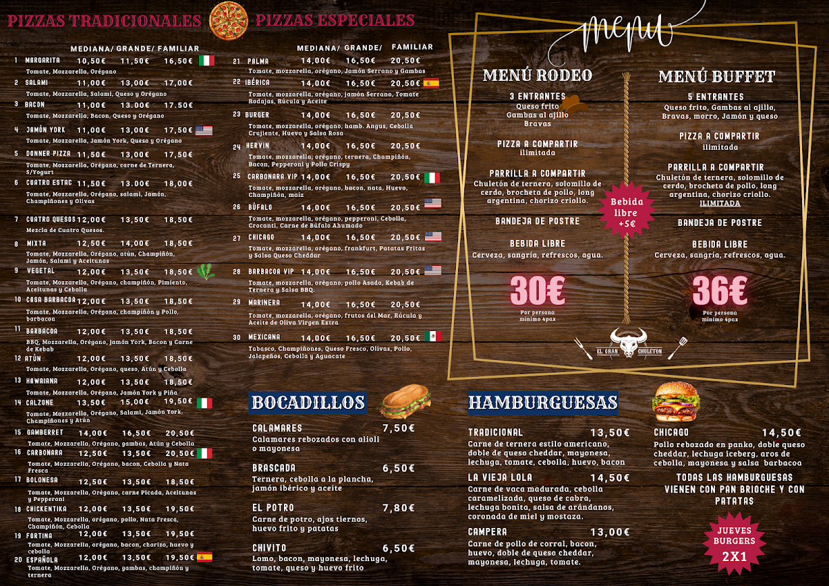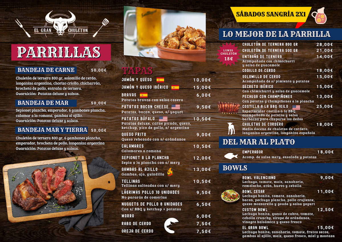 Tapas at El Gran Chuletón offer a delicious journey through classic Spanish bites — from the rich jamón ibérico and queso to crispy patatas bravas and the indulgent queso frito served with blueberry sauce. Seafood lovers will appreciate the fresh gambas al ajillo and perfectly grilled sepionet.