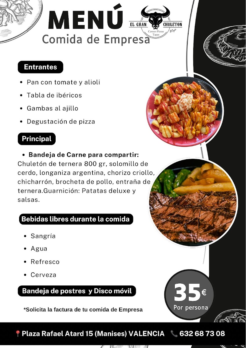 El Gran Chuletón in Manises, Valencia, is a vibrant bar & grill and chophouse that masterfully blends traditional Spanish flavors with hearty, grill-focused fare. The menu shines with its impressive parrillas, featuring a generous 800g chuletón de ternera, alongside juicy solomillo de cerdo and authentic Argentine longaniza. Each dish is beautifully paired with deluxe potatoes and flavorful sauces, creating a satisfying carnivore’s feast.